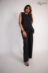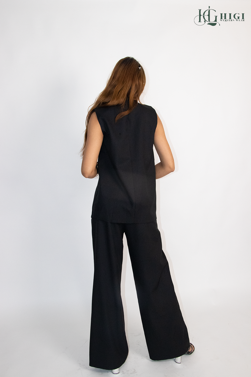 Feel bold and stylish in our co-ord set featuring a heavy-material top with a front slit closure and no sleeves. This co ord set is complete with elastic slim-fit pants for a more chic look.
