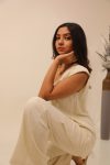 This cream co-ord set effortlessly combines sophistication and comfort, making it a wardrobe essential for every modern woman. The set includes a solid cream top with a round neck, delicate floral button accents, and padded shoulders that add a touch of structure and elegance. The matching mid-rise trousers are crafted from high-quality fabric with an elastic waistband for a comfortable and flattering fit. Whether you’re heading to a work meeting, a casual outing, or a dinner date, this co-ord set ensures you look chic and feel confident. Designed with versatility in mind, it pairs beautifully with heels, sneakers, or statement accessories for any occasion.